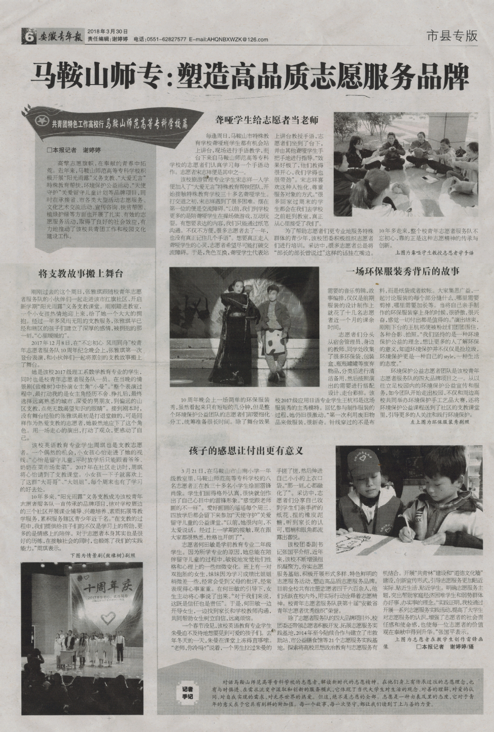 【安徽青年报】马鞍山师专:塑造高品质志愿服务品牌