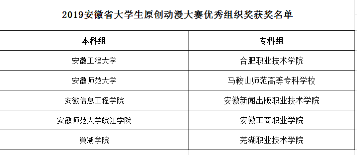 近日,安徽省教育厅主办的2019安徽省大学生原创动漫大赛评选结束。开云kaiyun登录入口共获得一等奖6项,二等奖12项,三等奖14项,学校也获得大赛优秀组织奖。