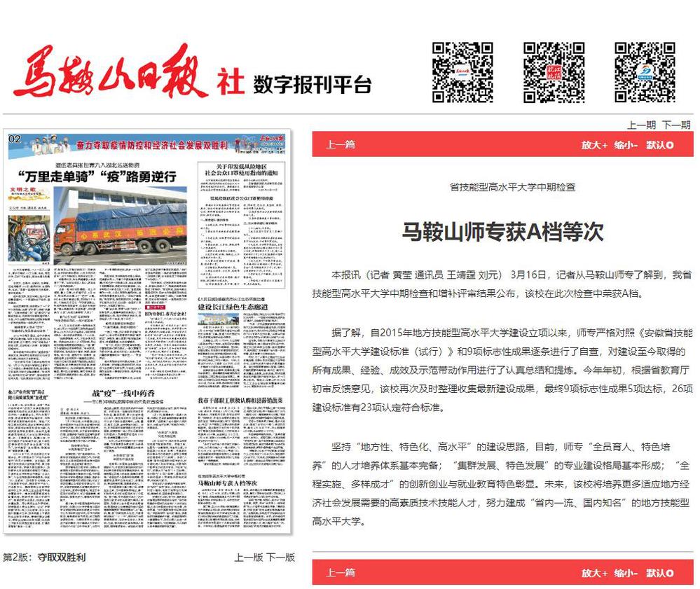 【马鞍山日报】马鞍山师专获A档等次