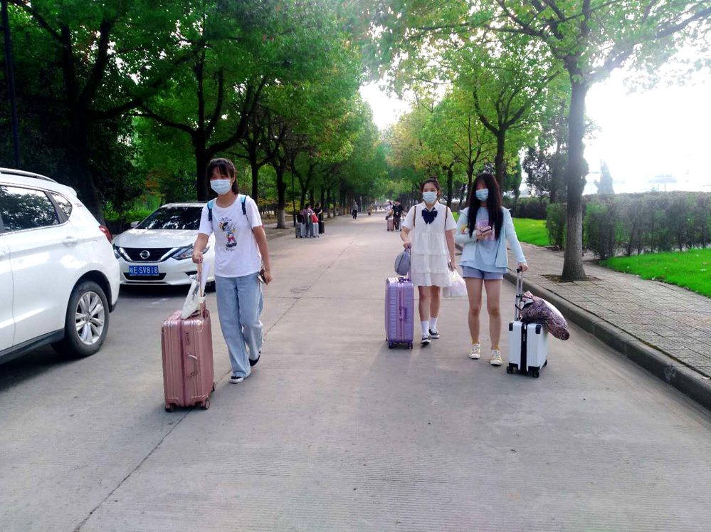 见到熟悉的辅导员和老师,同学们高兴地喊着“老师好”;同学之间久别重逢,拖着行李就开始了畅叙别情;见到久未见面的学生们,现场迎接学生的老师们用一句句“回来了”表达着喜悦的心情。