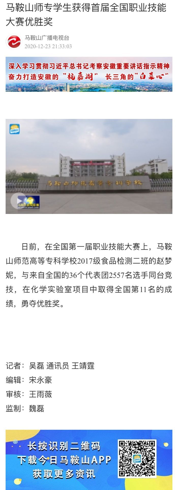 马鞍山师专学生获得首届全国职业技能大赛优胜奖