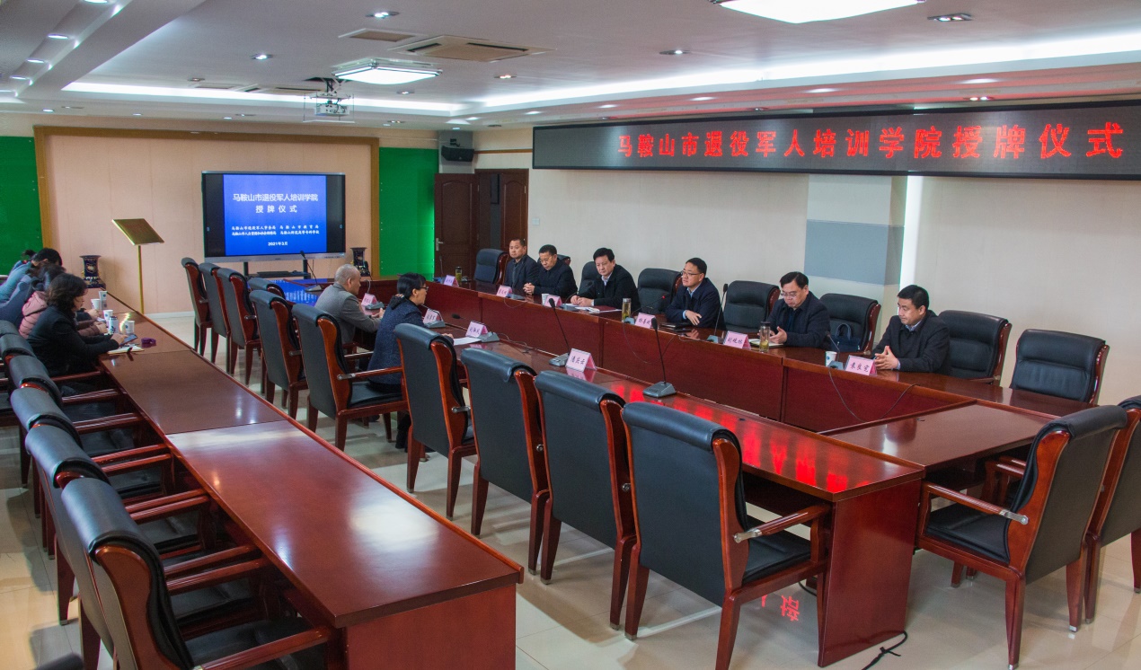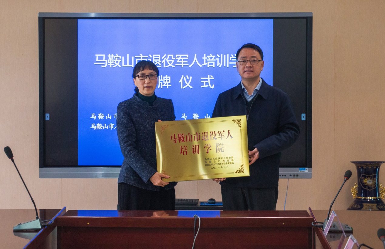 本网讯 为进一步做好退役军人的培训工作,提高退役军人的职业技能水平,3月18日上午,马鞍山市退役军人培训学院授牌仪式在开云kaiyun登录入口举行。马鞍山市政府副市长杨善斌,校党委副书记、校长刘淑风出席仪式。市政府副秘书长刘观林,校党委委员、副校长、统战部长张勇军参加仪式。