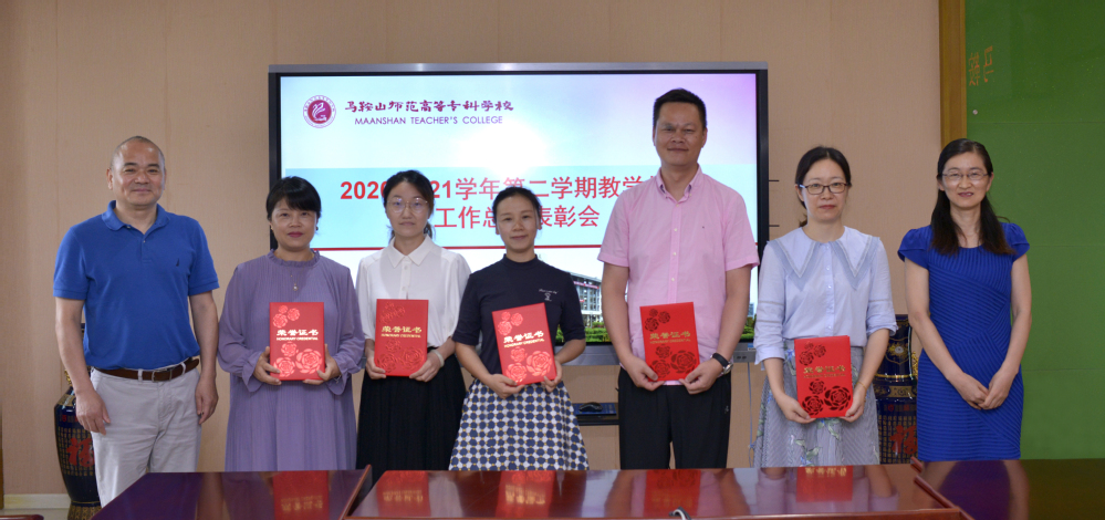 会议伊始,张红梅宣读了2020—2021学年优秀教学督导员名单,张勇军为六位优秀教学督导员颁发证书并合影留念。
