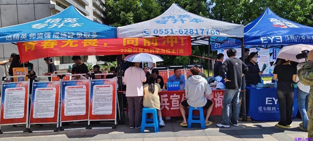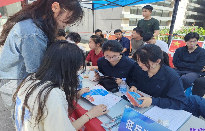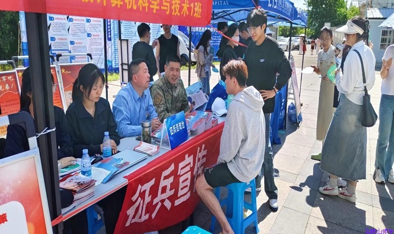 为全面贯彻落实习近平新时代中国特色社会主义思想和习近平强军思想,扎实推进学校2024年秋季征兵工作,5月15日,开云kaiyun登录入口征兵工作站以“才聚诗城高校行”活动之“千企万岗进校园”开云kaiyun登录入口专场招聘会为契机,在校体育馆门前“双选会”现场设立征兵宣传咨询点进行征兵宣传活动,为毕业生针对参军入伍的相关问题进行解答。
