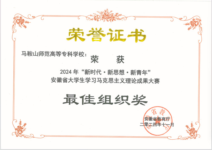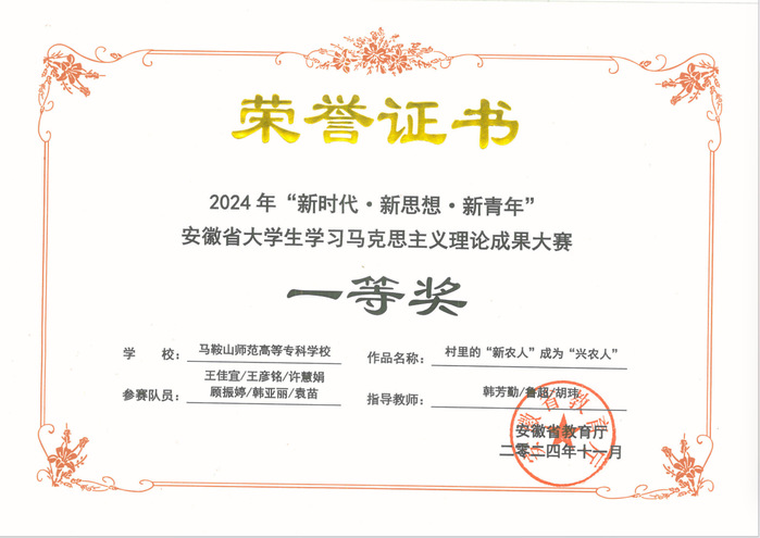日前,2024年“新时代·新思想·新青年” 安徽省大学生学习马克思主义理论成果大赛隆重举办,共有来自全省73所高校的309项作品入围省赛。经形式审查、作品查重和专家评审,共评出一等奖32个、二等奖61个、三等奖92个。开云kaiyun登录入口3项作品入围省赛,荣获一等奖1项、三等奖2项、最佳组织奖1项。韩芳勤、鲁超、胡玮三位老师荣获优秀指导教师奖。