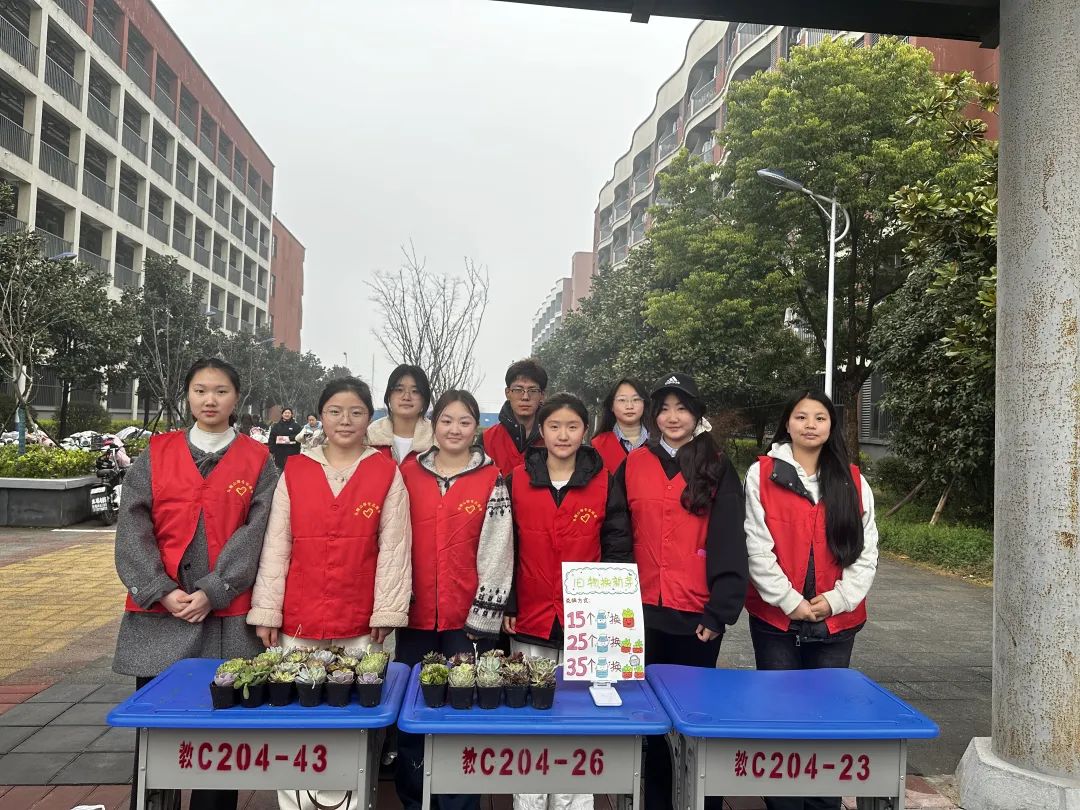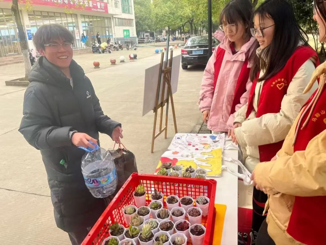 这些被领养的多肉将在同学们的悉心照料下成长为传递春讯的绿色使者,扎根校园土壤,为校园注入生机活力。而旧塑料瓶也借此契机华丽转身,跨越校区界限,化作友谊纽带,凝聚着学子们对环保事业、美好生活的炽热追求。