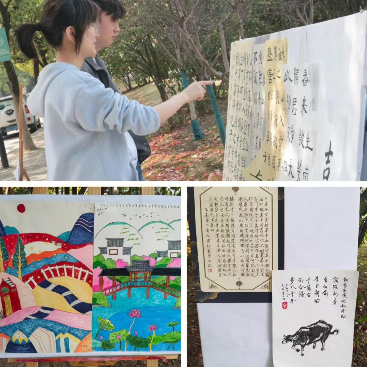 当日清晨,静态社团作品展区吸引众多目光。书法社团挥毫泼墨,展现书法魅力;绘画作品色彩斑斓,尽显学生想象力;手工艺作品精致细腻,令人称赞。