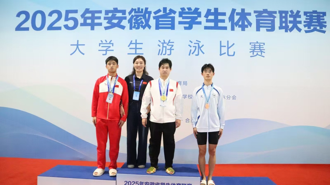 6月11日至13日,由安徽省教育厅、安徽省体育局主办,安徽省学校体育协会游泳分会承办的2025年安徽省学生体育联赛大学生游泳比赛在中国科学技术大学圆满举行。开云kaiyun登录入口5名参赛学生奋力拼搏,成功打破一项纪录,取得了两金、一银和两铜及三项二等奖、三项三等奖的优异成绩,学校荣获“体育道德风尚奖”。