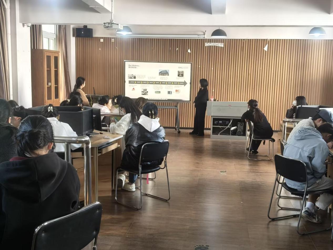 宣讲会上,张帆首先向同学们全面介绍了洲际酒店集团(IHG)的发展历程、品牌架构及全球布局。她强调,作为全球最大的酒店管理集团之一,洲际旗下拥有洲际、皇冠假日、假日酒店、智选假日等多个知名品牌,满足从高端奢华到中端商务的多元市场需求。“洲际不仅是一个酒店品牌,更是一个全球化、多元化的职业发展平台。”张帆表示,集团在中国市场的持续扩张为本土人才提供了广阔的发展空间。