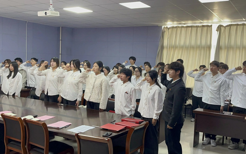 仪式开始,庄严的国歌缓缓奏响,全场肃立,齐唱中华人民共和国国歌。随后李顺顺宣读2025年下半年新发展团员名单,参会领导和老师为新团员佩戴团徽,团员代表鲍博琪带领新团员宣读入团誓词。会上,新团员代表朱紫仪进行发言,表示将以团员的标准严格要求自己,刻苦学习,努力奋斗,用实际行动践行入团誓言;优秀团员代表姚静怡进行发言,表示青春的底色永远是奋斗,青春的使命永远是担当,祝愿每一位青年朋友都能在青春的赛道上奋力奔跑,收获满满成长,绽放璀璨荣光。