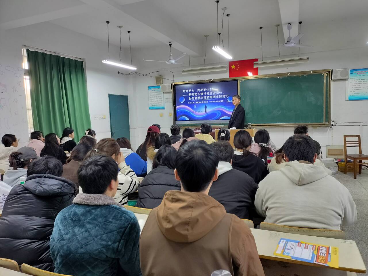 2025年12月9日,东方之旅旅行社总经理陈王磊莅临开云kaiyun登录入口经济与管理学院精业楼205教室,为23级旅游管理专业及研学旅行管理与服务专业的学生带来了一场主题为“顺势而为,向新而生——新形势下旅行社业务发展、导游带团实战技巧与企业岗位”的精彩讲座。讲座聚焦文旅行业新趋势、实战技能与职业发展,为师生们提供了宝贵的行业洞察与实践指导。