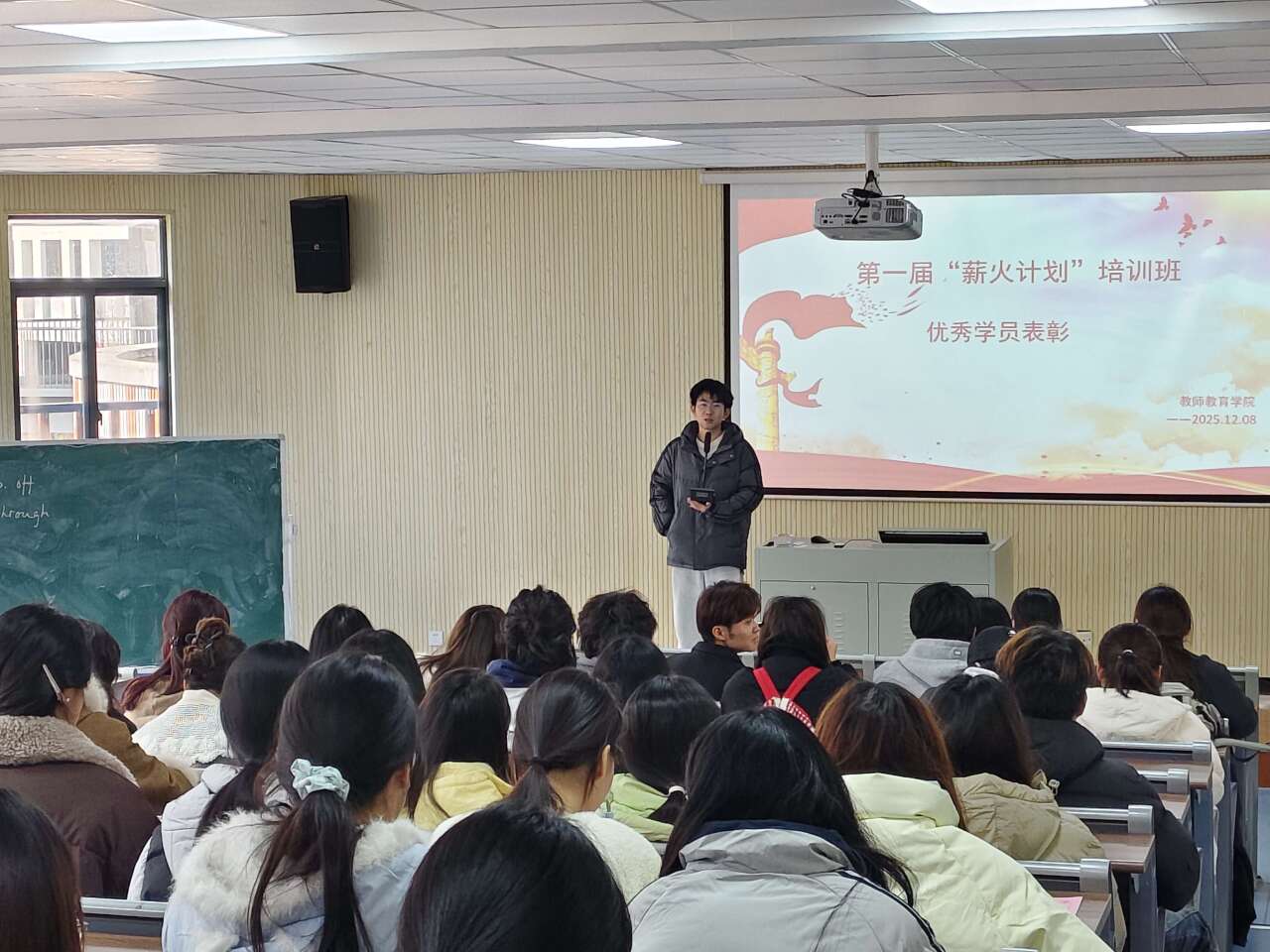 12月8日,教师教育学院在滨江校区F203举行了新入团仪式暨“薪火计划”优秀学员颁奖活动。学院团总支书记冯金燕,团总支副书记汪文君出席。