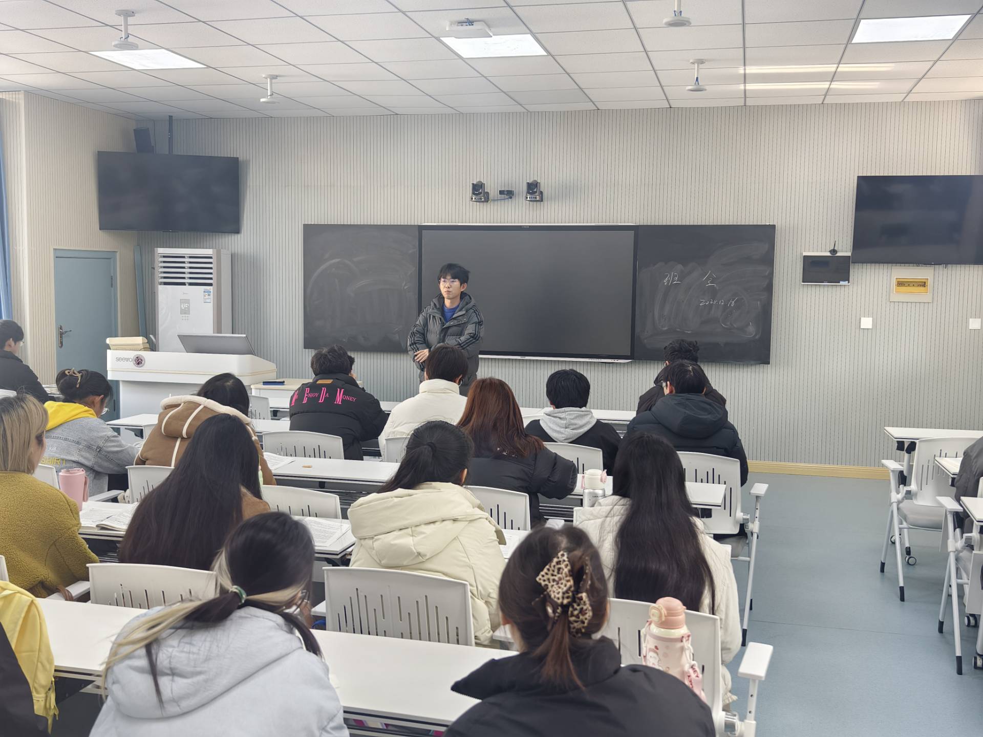此次班会紧密围绕安全教育主题,着重聚焦防范电信诈骗与日常安全两大方面。辅导员在各班深入剖析常见的诈骗手段和安全隐患,引导同学们树立正确的防范意识,随后各班分别组织学习研讨。