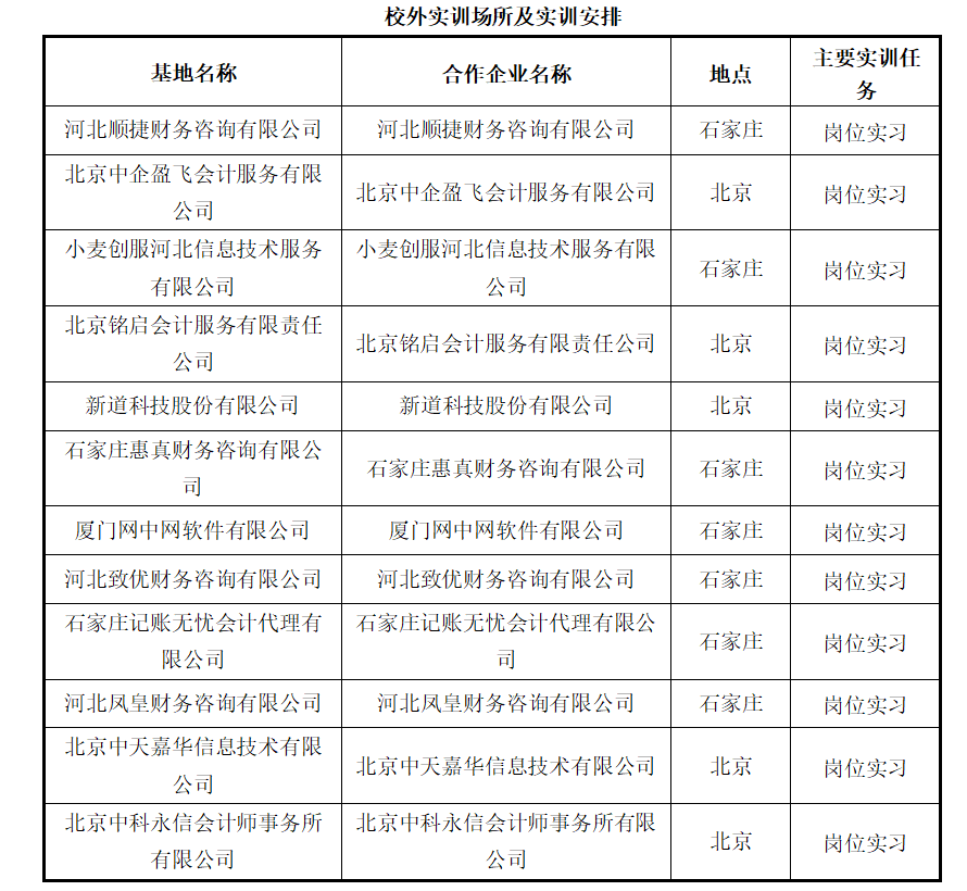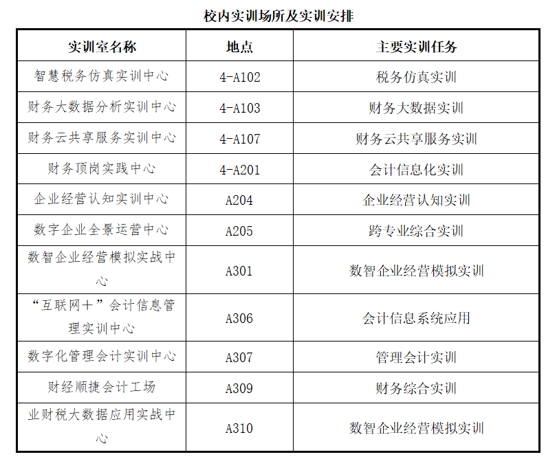 学院教学设施完备,育人条件优越。配备标准化多媒体教室,为理论教学筑牢基础;建有涵盖会计综合实训、财务共享服务中心、财务大数据分析实训中心、数字全景运营中心等功能型空间的会计综合实训基地,校外实训场所遍布京津冀,紧密对接行业需求,全面满足专业实训、技能提升与职业认证需求。