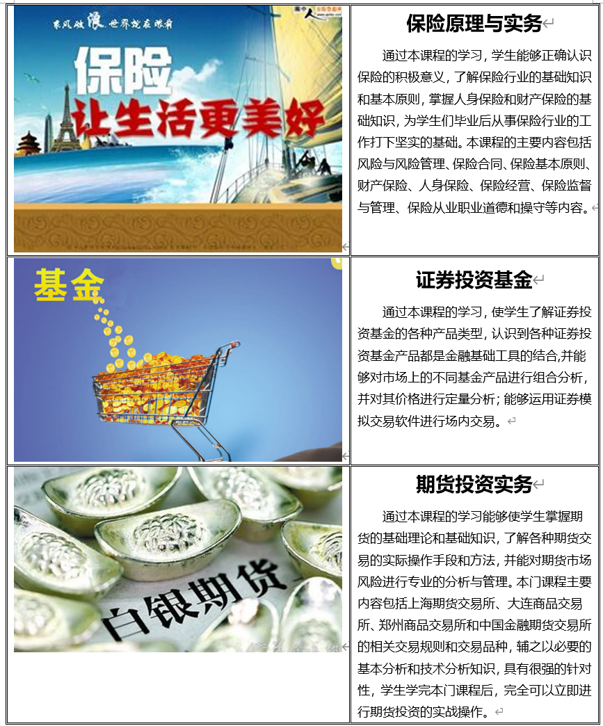 财富管理专业已与多家金融机构签订校企就业合作协议,有效地保证了学生专业技能的实习实训。如中国人寿、北京天相财富、北京指南针投顾、河北源达投顾、招商证券等。