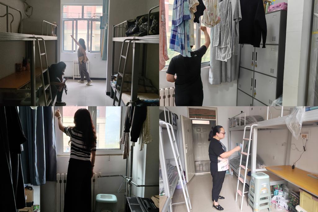 此外,辅导员们同步开展消防安全与设施排查,清理了走廊内堆放的杂物,确保消防通道畅通;逐一检查床铺、桌椅、水龙头等设施完好情况,针对部分宿舍存在的阳台堆放物品,辅导员们现场拍照记录,建立整改台账,确保所有隐患全部清零。提前返校的学生也表示,整洁安全的宿舍让他们倍感亲切,能更快投入新学期生活。
