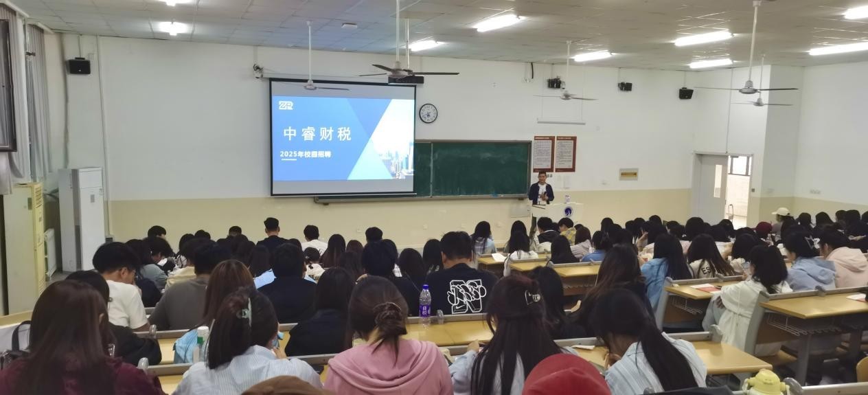 中睿财税负责人在宣讲中尽显企业魅力,全方位展示企业雄厚实力与光明前景。作为深耕财税领域多年的行业翘楚,中睿财税业务广泛覆盖税务筹划、财务审计、金融咨询等多元板块,声誉斐然。负责人着重介绍了企业完善的人才培养体系、通畅的晋升渠道和诱人的薪酬福利,围绕会计、金融等专业,细致解读会计助理、审计专员、金融分析师等岗位任职要求与发展潜力,瞬间点燃学生们的浓厚兴趣。