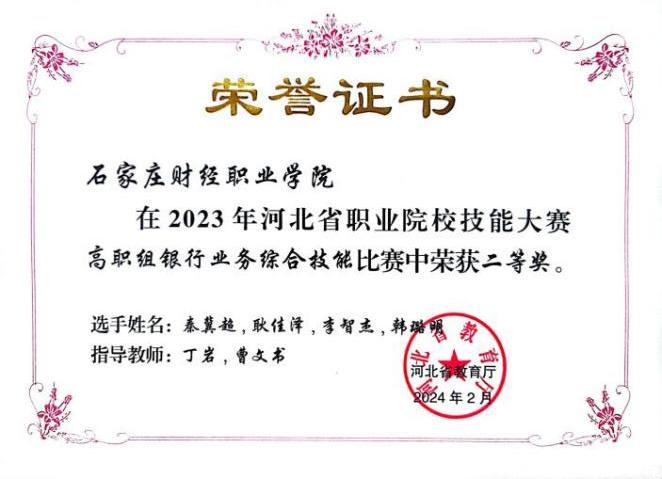 2023年河北省职业院校技能大赛高职组银行业务综合技能二等奖