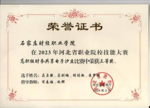 2023年河北省职业院校技能大赛高职组财务共享电子沙盘比赛三等奖