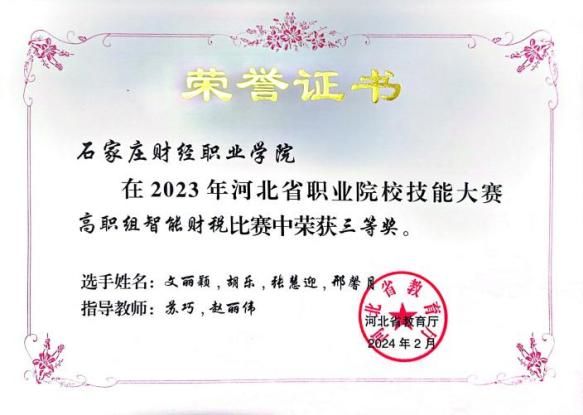 2023年河北省职业院校技能大赛高职组智能财税比赛三等奖