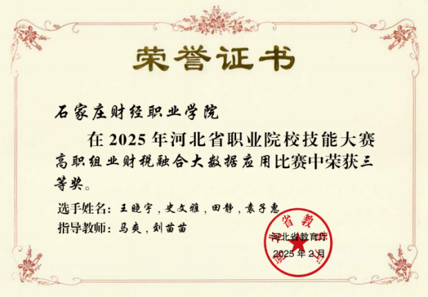 2025年河北省职业院校技能大赛高职组业财税融合大数据应用比赛三等奖