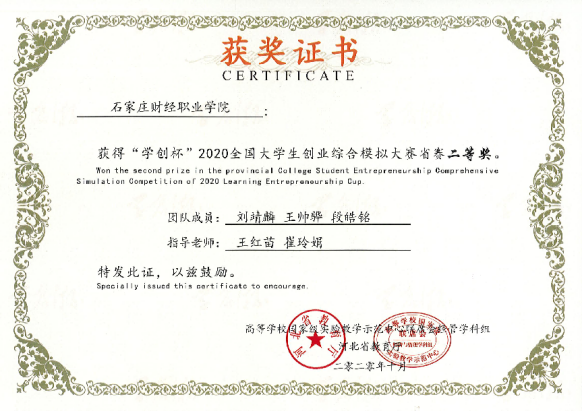 2020全国大学生创业综合模拟大赛省赛二等奖