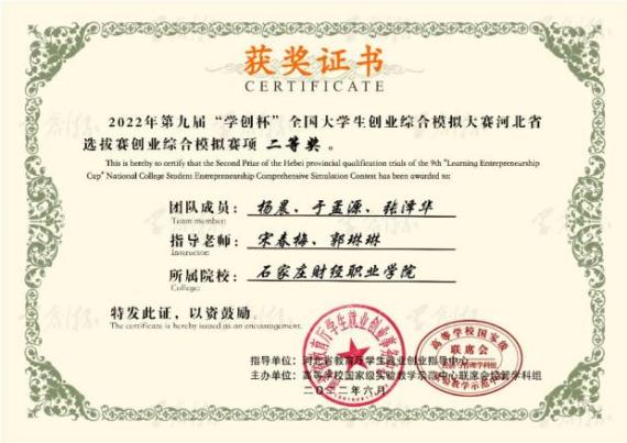 2022年第九届“学创杯”全国大学生创业综合模拟大赛河北省选拔赛创业综合模拟赛项二等奖
