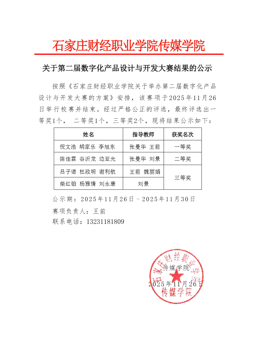 关于公布2025年第二届数字化产品设计与开发大赛结果的公示