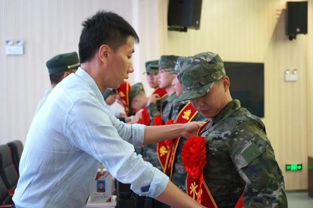 参会领导为beat365入伍新兵佩戴大红花,并赠送纪念品。