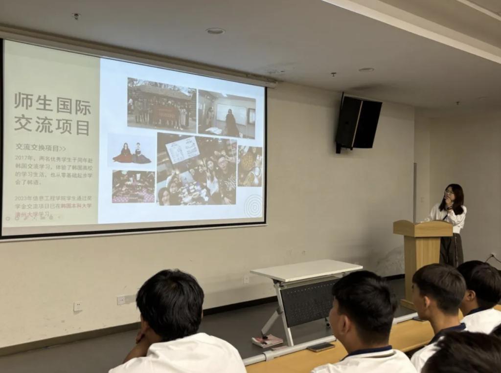 活动期间,国际交流与合作中心的老师通过丰富、生动的讲解详细阐述了学校在国际交流领域的总体战略发展,包括与国际知名院校及教育机构的合作情况、优质教育资源的引进与融合成果,以及学校在中国职业教育"走出去”、传播中国文化方面的实践与成效。同时,入学教育重点剖析了各类面向学生的国际交流项目的具体形式、独特优势和申请方式,为新生们规划大学生涯、拓展国际化发展路径提供了清晰指引和宝贵信息。