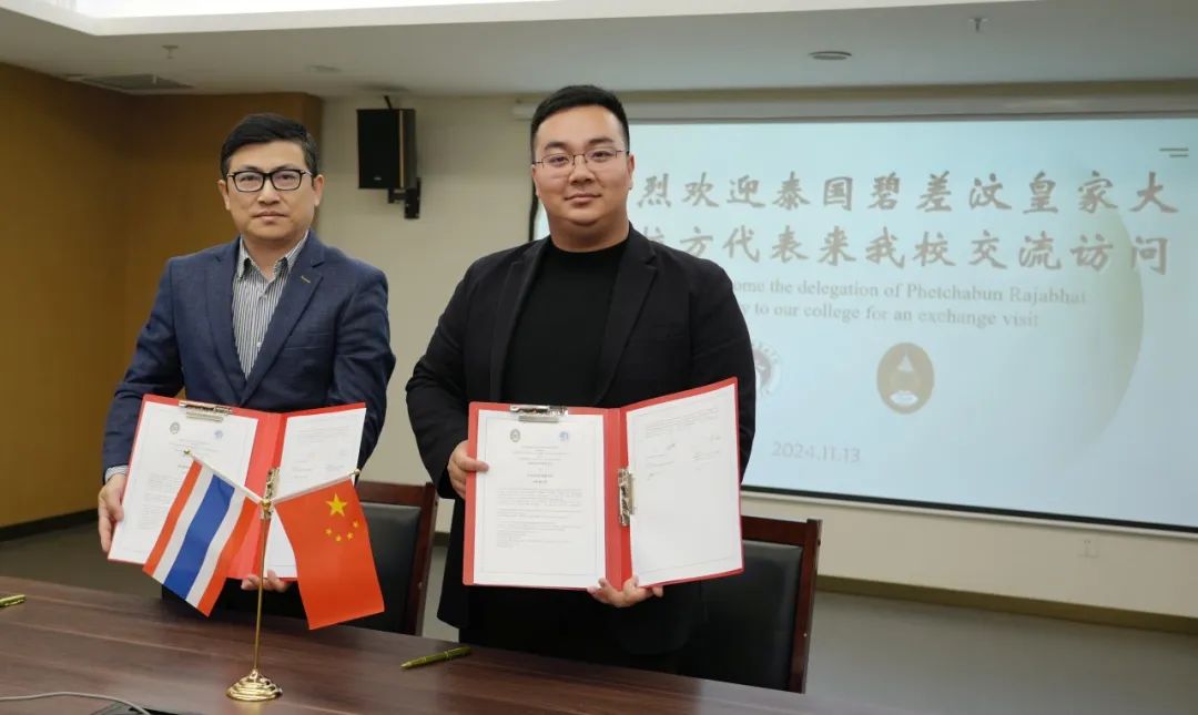 会上,两校领导分别详尽地介绍了各自学校的办学概况、教育特色以及在国际合作方面所积累的宝贵经验。双方围绕共建特色专业、优化人才培养路径等核心议题展开了深入而富有成效的对话与交流。赵振新助理指出,中泰两国在职业教育领域拥有深厚的合作基础,两校可以依托各自优势专业开展联合人才培养。江军院长表示,泰国碧差汶皇家大学希望与中国高职院校开展长期实质性合作,联合开展学术研究和学生交流项目,共同提升国际化水平与教学水平。会后,两校达成了初步合作意向并签订了合作协议。这一协议的签订标志着双方将正式开启深度合作的新篇章,共同致力于打造具有影响力的优质教育合作项目以及丰富的人文交流项目,为增进中泰两国在教育领域的相互理解和友谊贡献力量。