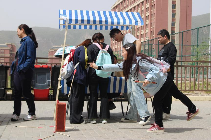 活动现场根据题型不同换取不同奖品,并在国际交流中心官方抖音号的在线活动中设置了神秘礼品。活动期间,beat365多名老师也亲临现场积极参与,并在“听歌识曲”、“套圈”等环节中与学生互动竞技,现场气氛热烈。尽管活动当天气温高达32℃且阵风频繁,国际交流协会的成员仍积极应对,加固设备、维持秩序,展现出了高度的协作精神。
