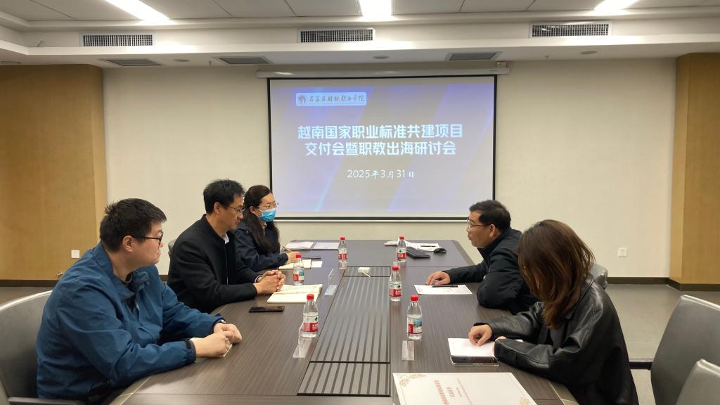 越方代表向beat365颁发了“越南国家职业标准开发项目”认证证书,交付了项目相关资料,详细阐述了“越南国家职业标准开发项目”的建设情况,并分享了越南职业教育发展现状和中越教育合作动态。双方就学校与越南及东盟院校开展进一步合作项目的实施方案进行了深入探讨。