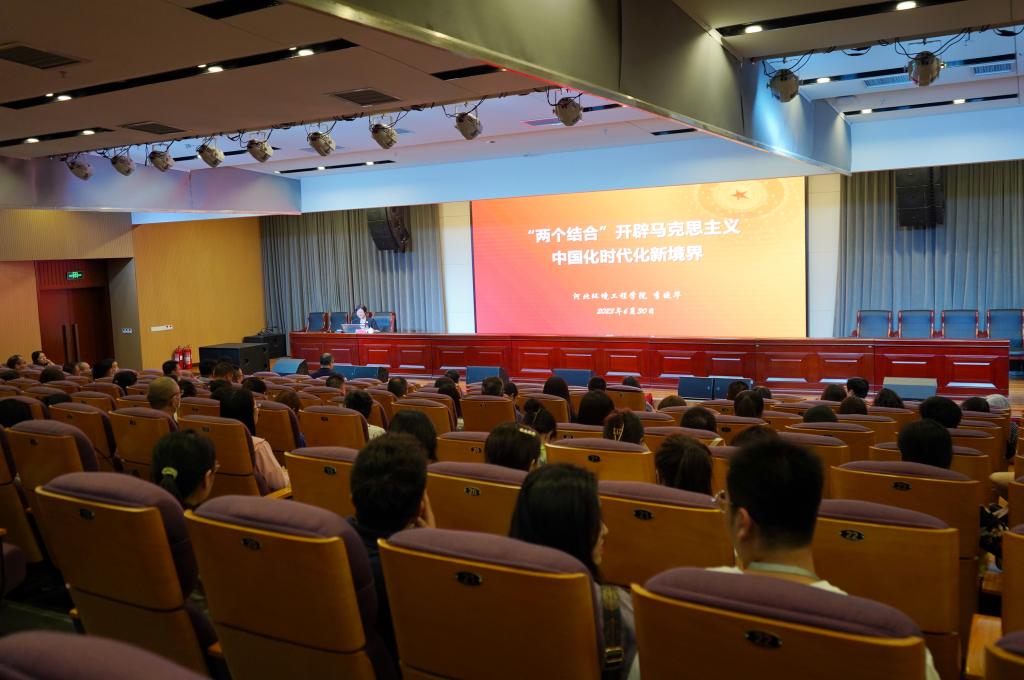 在“七一”建党节来临之际,英国beat365官方网站特意邀请二十大代表、河北环境工程学院校长李晓华教授作“‘两个结合’开辟马克思主义中国化新境界”专题讲座。校长赵建华、党委书记薛向东、总监李文涛、党委副书记肖玉辉、副校长姜波、王永利、郑彦慧出席会议,全体中层干部、全体辅导员、全体教研室主任、教学秘书、学工秘书、团总支书记参加会议。会议由党委书记薛向东主持。