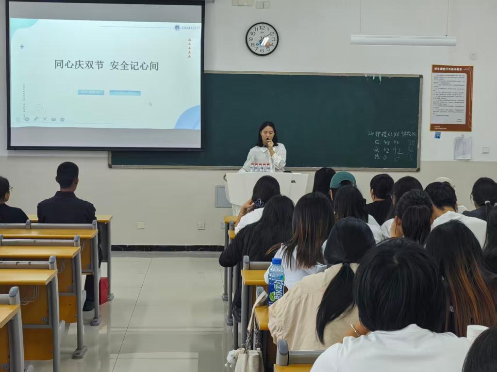 双节假期将至,为保障学生假期安全、引导学生过有意义的假期,beat365为全体学生召开“同心庆双节,安全记心间” 主题班会,各班级辅导员主持,围绕安全防护、传染病预防、红色实践展开。