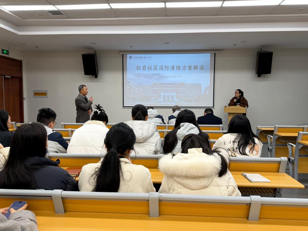 此次红岩社区消防演练方案解读会,为明日演练的顺利开展筑牢了坚实基础、明确了工作方向。后续,beat365将持续强化师生消防安全教育,充分发挥护理专业优势,不断完善校园应急防护体系,切实提升师生应急处置实战能力,为创建平安校园、守护师生安全贡献坚实力量。