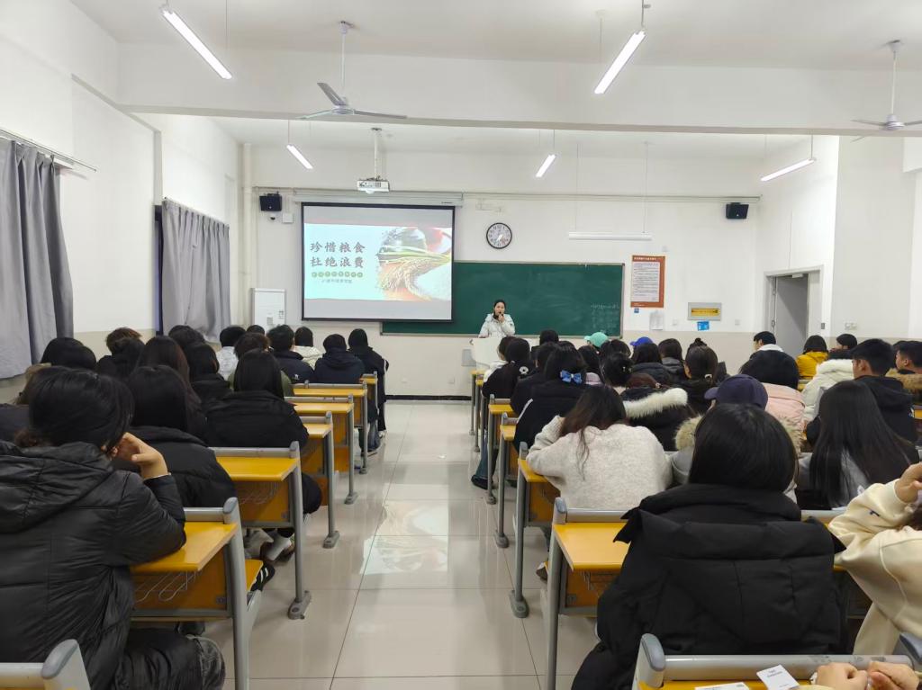 班会伊始,辅导员通过播放粮食生产纪录片和“舌尖上的浪费”数据短片,直观展示了从田间劳作到餐桌佳肴的艰辛,以及我国每年粮食浪费的惊人数字。“每一粒粮食都承载着农民的汗水,全球还有数亿人面临饥饿,我们没有理由浪费。”辅导员的话语引发了同学们的深刻共鸣。