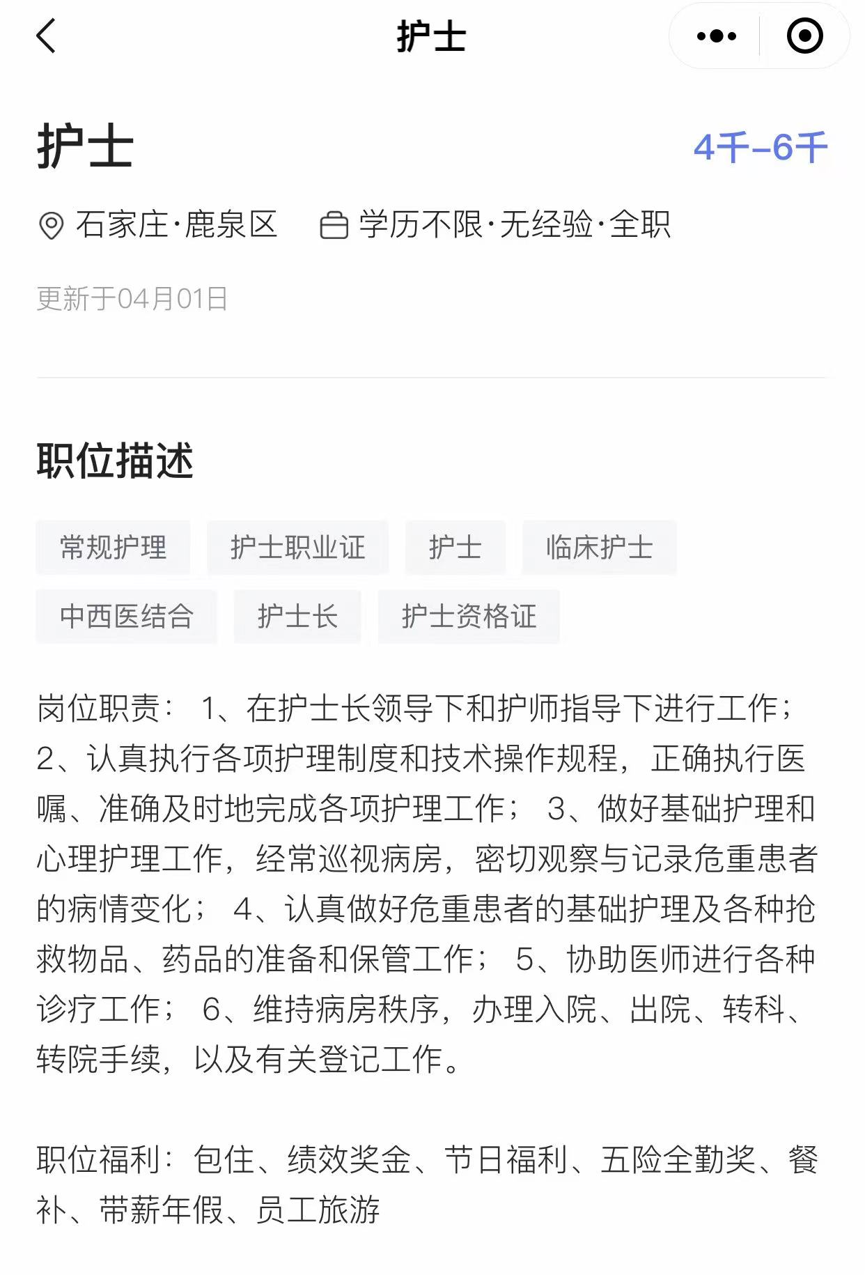 石家庄市鹿泉区华康医院招聘——公告