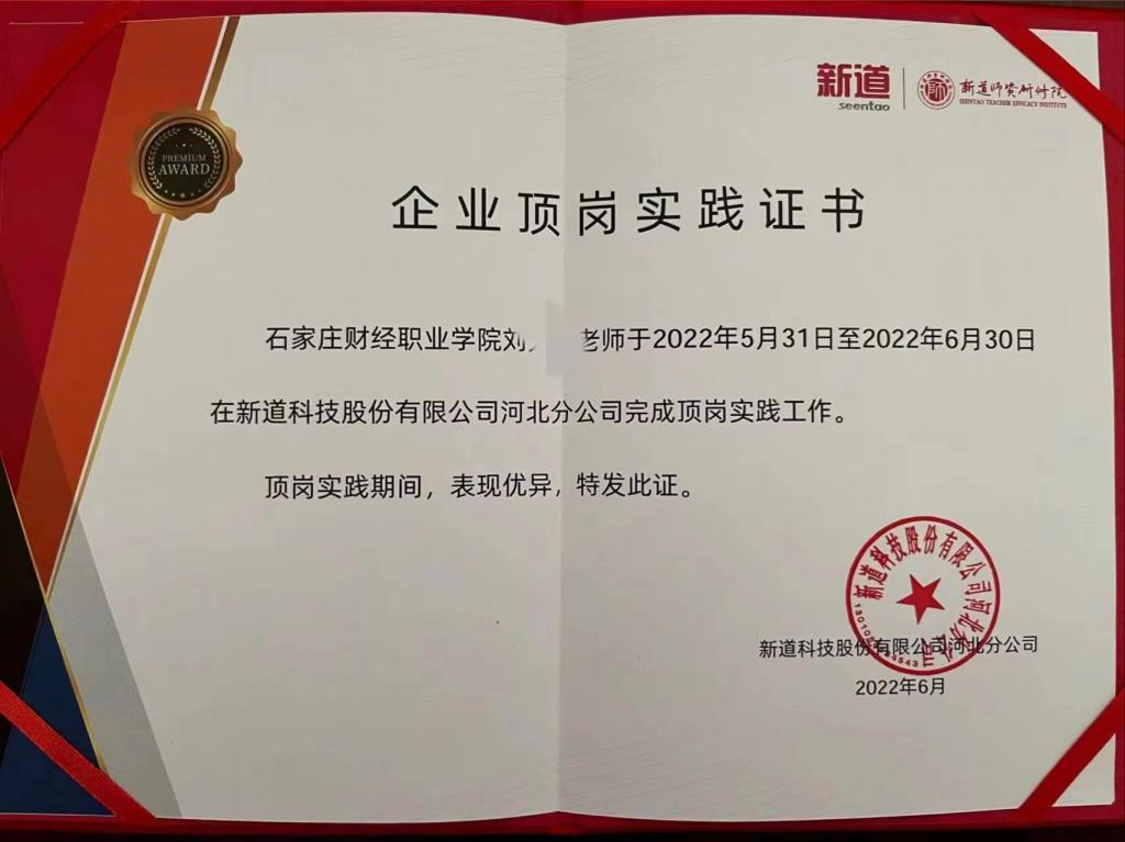 教师下企业实践,以优秀成绩结业