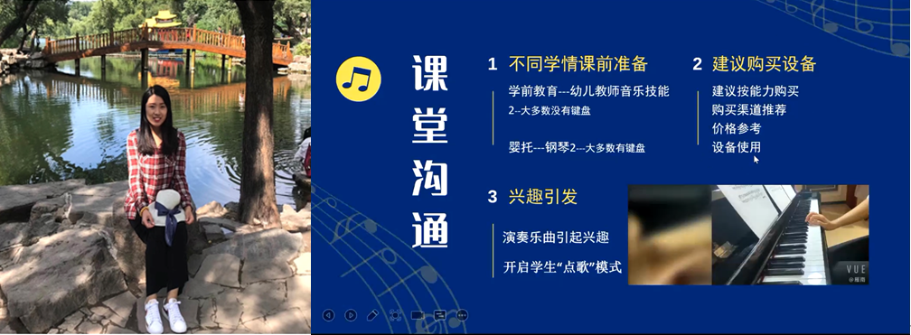 学前教育与艺术教育学院的金雁老师,结合任教的钢琴课程从课堂沟通、课堂教学、课堂效果3个方面进行了经验分享。提出可以采取分层教学,因材施教,多说,多看,多听,以提高学生的课堂积极性。