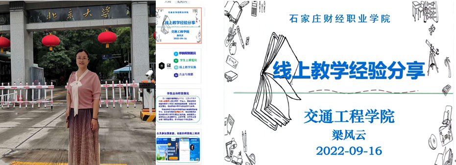 交通工程学院的梁风云老师从学院师资情况、学生出镜情况、线上教学实施、方法与策略几个方面进行了汇报。提出应强化师生互动,与学生产生同频共振效果。