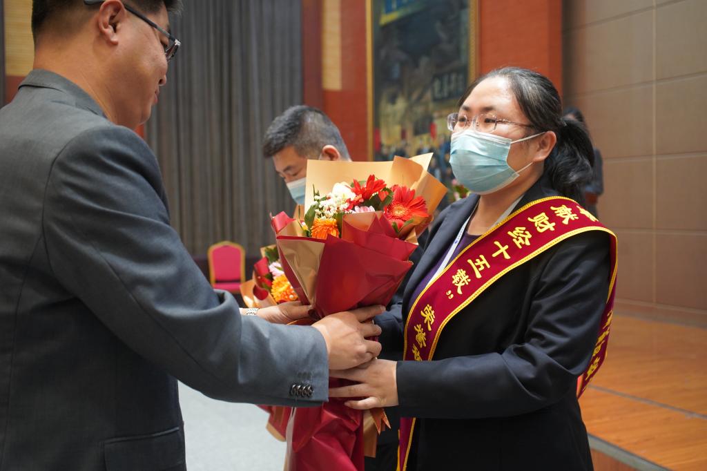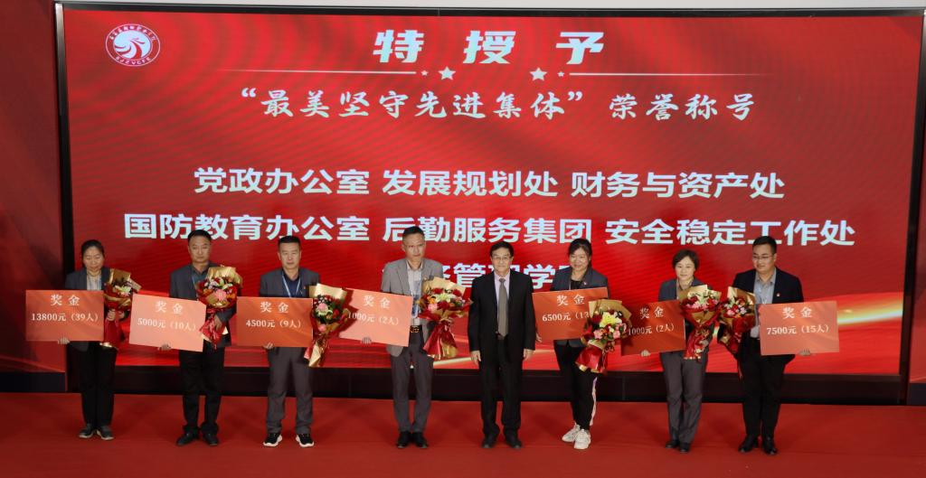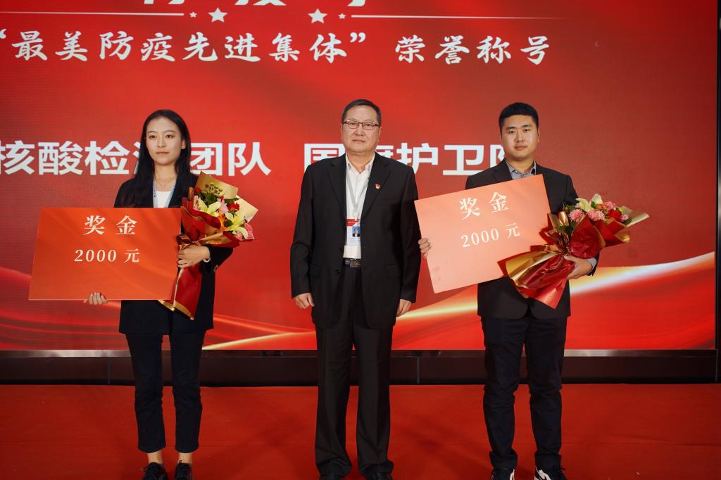 校领导分别为“爱心服务者”“抗疫坚守带头人”“最美防疫先进集体”“最美坚守先进集体”获奖代表颁发证书与奖金。