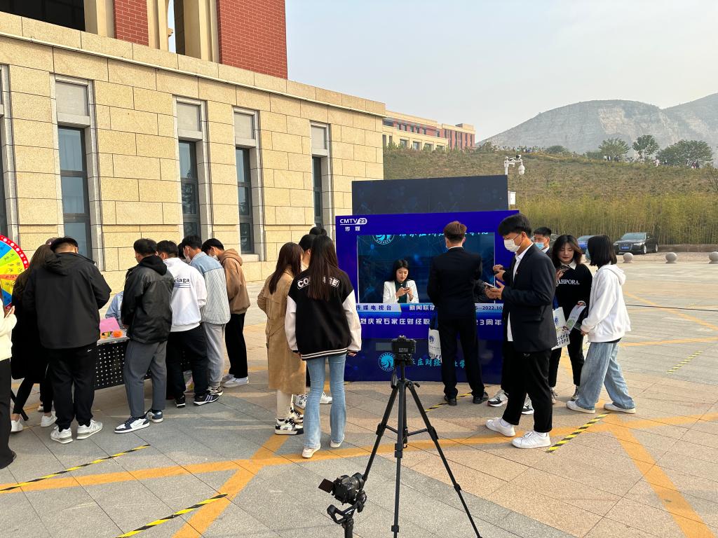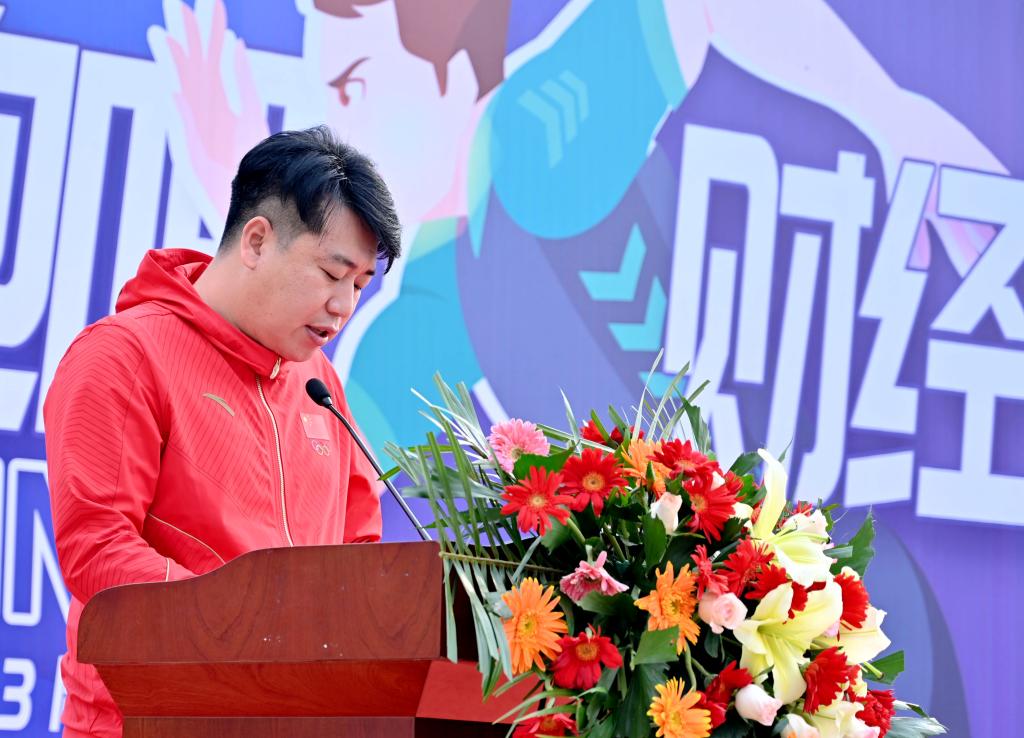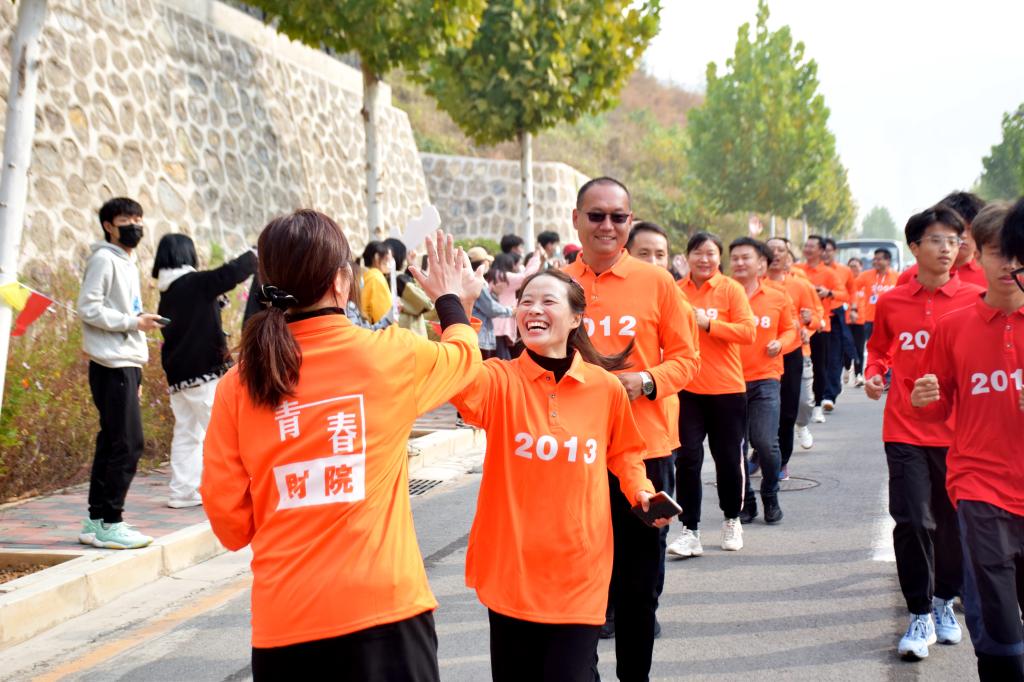 10点26分,举行“奔跑吧财经人”校园马拉松活动,校长赵建华致辞。奥运冠军庞伟助力校庆,并为校园马拉松鸣枪。48名师生依次接力在校园奔跑,他们身着印有1999-2022不同年份的衣服,象征着学校的发展与传承,展现了“财经人”不断挑战自我、超越自我的精神品质。