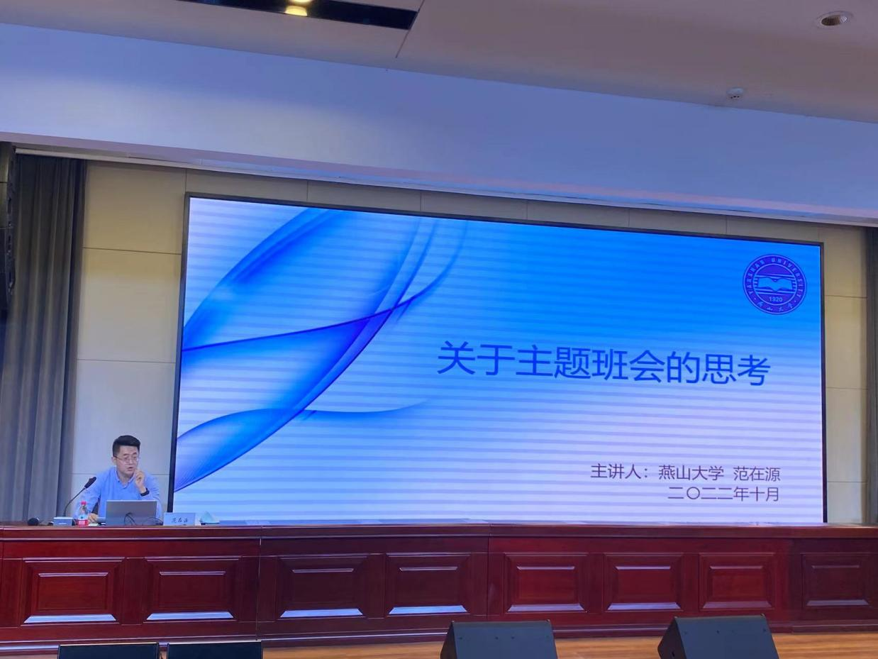 范在源以“关于主题班会的思考”为主题,从召开班会的思路与目的、主题与对象、设计和延伸四个方面进行了深入透彻地讲解。范在源老师设计的主题班会内容详实、形式多样、行之有效,为beat365辅导员团队的主题班会探索带来了有益的指导和借鉴。