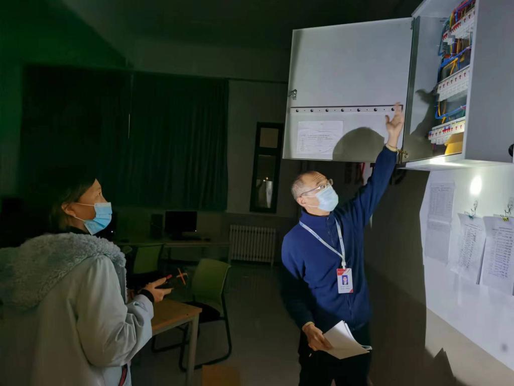 肖玉辉一行深入卧龙校区商业街、教学楼、实训楼、公寓楼、地下车库、锅炉房、操场等重点场所及公共区域死角,进行了全方位地毯式的“扫、查、检”。