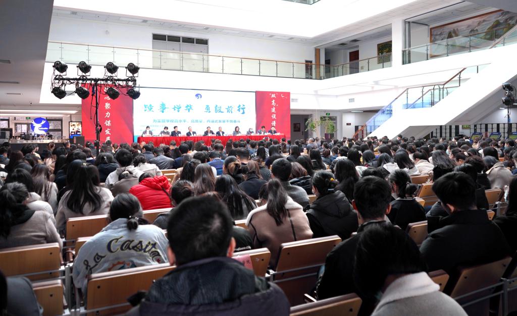 报告中指出:2022年,是学校发展史上最具里程碑意义的一年,学校正式跻身“省域双高”校建设行列,开启了学校发展历史上的新征程;同时也是最能诠释财院精神的一年,全校教职工上下一心抗击疫情,成为全省为数不多的“零感染”高校。一年来,学校牢牢把握发展机遇,始终坚持以习近平新时代中国特色社会主义思想为指导,深入学习贯彻党的十九大、二十大精神,坚持社会主义办学方向,坚定落实2022年开年提出的“五个着力,五个深化”战略目标,形成办学理念“明定位”、师资队伍“提质量”、专业建设“成梯队”、人才培养“强素质”的发展局面;坚持自信自强、守正创新,带领全体教职工同舟共济、砥砺奋进,采取一系列战略性举措,推进一系列变革性实践,经受住了来自多方面的风险考验;坚持以“提质培优”为主线,坚持党建引领,创新发展思路,深化内涵建设,提升育人实效,逐步实现高质量、跨越式发展;坚持锐意进取、改革创新,探索出“绩效考核和分类教学改革”两条特色发展道路;坚持不懈地抓好师资队伍建设,夯实基础建设,提升教职工幸福指数,不断为高水平发展增添动力。
