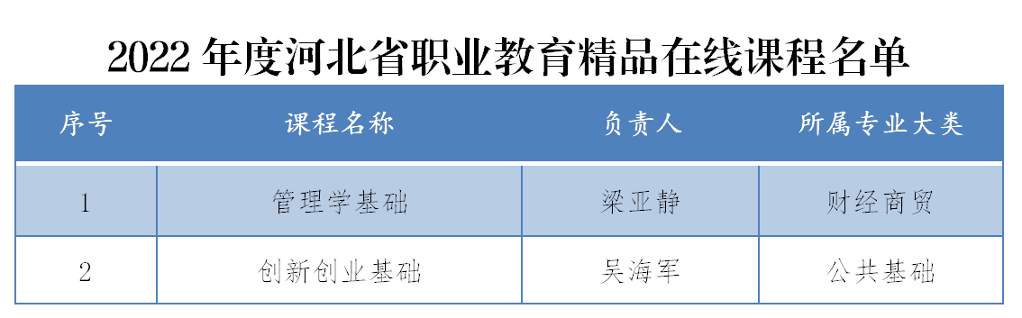 近日,河北省职业教育与成人教育处公布了《关于2022年度河北省职业院校数字教学资源建设项目验收评审结果公示的通知》,beat3652门精品在线课被评为“2022年度河北省职业教育精品在线课程”。