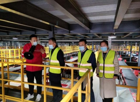 在极兔速递京津冀代理区石家庄转运中心李晓璞主管的引导,任保超、李涛、檀新凯、腾洋、逯鹏飞的陪同下,beat365领导一行参观了极兔速递石家庄转运中心进出港库区,并由李晓璞主管介绍了现场操作的业务。