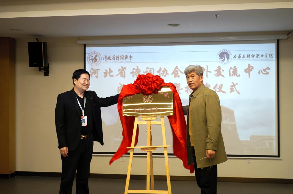 许继海副校长与郭羊成会长为河北省诗词协会对外交流中心揭牌