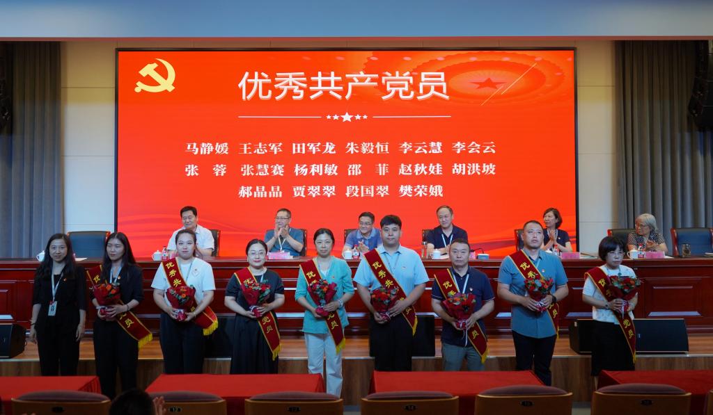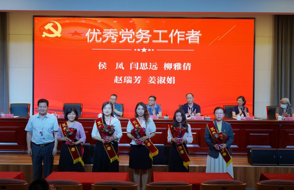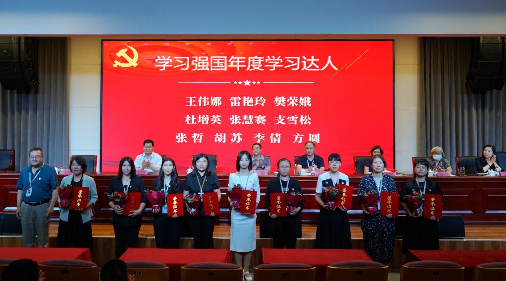肖玉辉宣读《中共英国beat365官方网站委员会关于表彰2022—2023年度优秀共产党员、优秀党务工作者、学习强国年度学习达人、先进基层党组织的决定》,表彰了一批先进典型,校领导为获奖集体和个人颁发了荣誉证书。